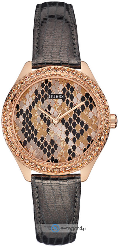 Zegarek damski W0626L2 marki Guess to propozycja dla kobiet ceniących sobie zarówno modny wygląd, jak i niezawodność. Ten amerykański zegarek, dzięki swojemu unikalnemu designowi, z pewnością przyciągnie spojrzenia i doda blasku każdej stylizacji. Wysokiej jakości tarcza w kolorze brązowym nadaje mu wyjątkowego charakteru. Zegarek prezentuje aktualny czas w formacie analogowym, co zapewnia łatwy i intuicyjny odczyt. Koperta w kolorze różowego złota ma szerokość 36 mm i grubość 8 mm, co sprawia, że zegarek idealnie leży na nadgarstku, podkreślając jego subtelność i biżuteryjny charakter. Zegarki Guess to kwintesencja amerykańskiej innowacyjności, łącząca w sobie modny design i wysoką jakość wykonania. Model ten jest dostępny w atrakcyjnej cenie dzięki aktualnej ofercie Outlet dla zegarków Guess. Zasilanie zegarka Guess W0626L2 to klasyczna bateria kwarcowa, gwarantująca precyzję i niezawodność. Pasek w kolorze szarym wykonany jest z wysokiej jakości skóry, co zapewnia trwałość i komfort noszenia. Ten amerykański zegarek to idealny dodatek dla każdej kobiety, która ceni sobie styl i funkcjonalność.