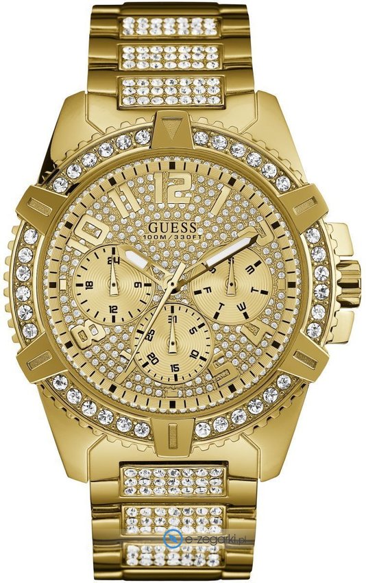 Zegarek damski W0799G2 marki Guess to ciekawa pozycja dla osób ceniących sobie dbałość o detale jak również bezproblemowe funkcjonowanie mechanizmów. Tarcza zegarka w kolorze złotym. Zegarek ten prezentuje aktualny czas w formacie analogowym dzięki temu odczyt jest intuicyjny. Koperta została ozdobiona kolorem złotym szeroka jest na 48 mm oraz ma grubość 13 mm - wyróżnia się okrągłym kształtem.