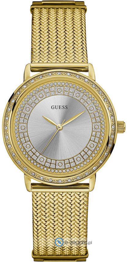 Zegarek damski W0836L3 marki Guess to idealna propozycja dla osób ceniących sobie dbałość o szczegóły jak również bezproblemowe działanie mechanizmów. Cyferblat zegarka w kolorze srebrnym. Koperta jest w kolorze złotym szeroka jest na 36 mm oraz ma grubość 9 mm - ma okrągły kształt.