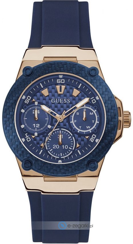 Zegarek damski W1094L2 marki Guess to dobra propozycja dla ludzi ceniących sobie dbałość o detale oraz bezproblemowe działanie mechanizmów. Cyferblat zegarka w kolorze granatowym. Koperta szeroka jest na 39 mm oraz ma grubość 10 mm - cechuje się okrągłym kształtem.