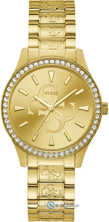 Model W1280L2 marki Guess to elegancki zegarek naręczny damski, który jest wyposażony w ciekawe rozwiązania oraz funkcje. Tarcza zegarka jest w kolorze złotym. Pokazana metodą analogową aktualna godzina jest czytelna i szybka do sprawdzenia. Koperta w barwach koloru złotego szeroka jest na 38 mm - ma okrągły kształt.