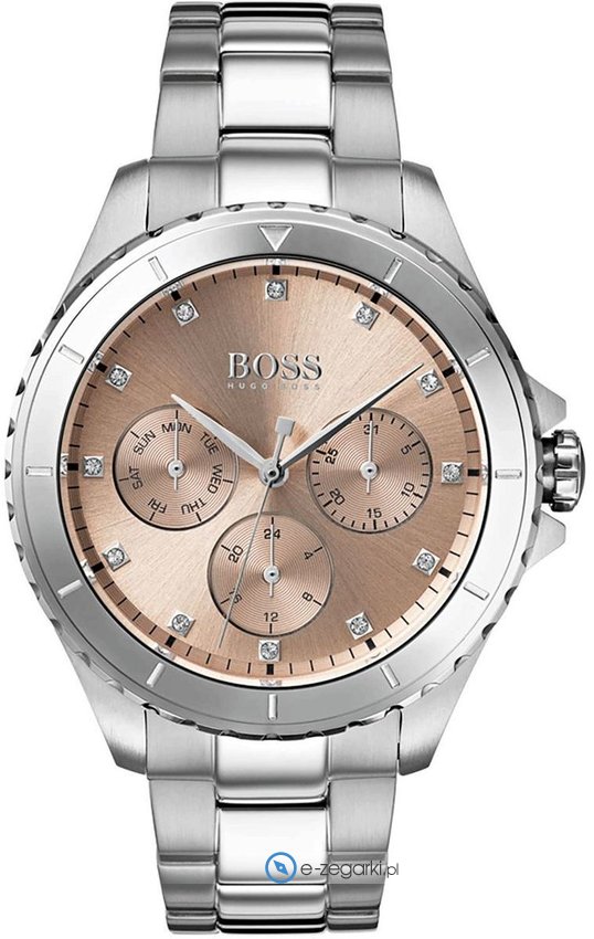 Zegarek damski 1502444 marki Hugo Boss to stylowe połączenie funkcjonalności oraz ciekawego wzornictwa. Styl zapewnia wysokiej klasy tarcza w kolorze złotym. Zegarek ten pokazuje godzinę w formacie analogowym dzięki czemu odczyt jest bezproblemowy. Koperta jest w kolorze szarym szeroka jest na 38 mm - w kształcie okrągłym.