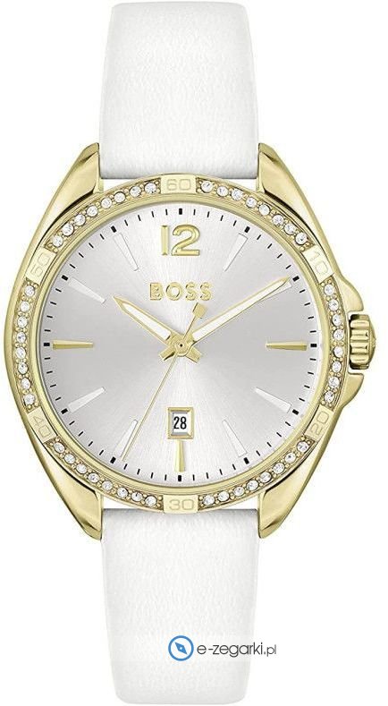 Model 1502619 marki Hugo Boss to elegancki zegarek naręczny damski, który jest wyposażony w ciekawe rozwiązania i funkcje. Tarcza zegarka jest w kolorze srebrnym. Zegarek ten prezentuje godzinę w formacie analogowym dzięki czemu odczyt jest bezproblemowy. Koperta w barwach koloru złotego szeroka jest na 39 mm - ma okrągły kształt.