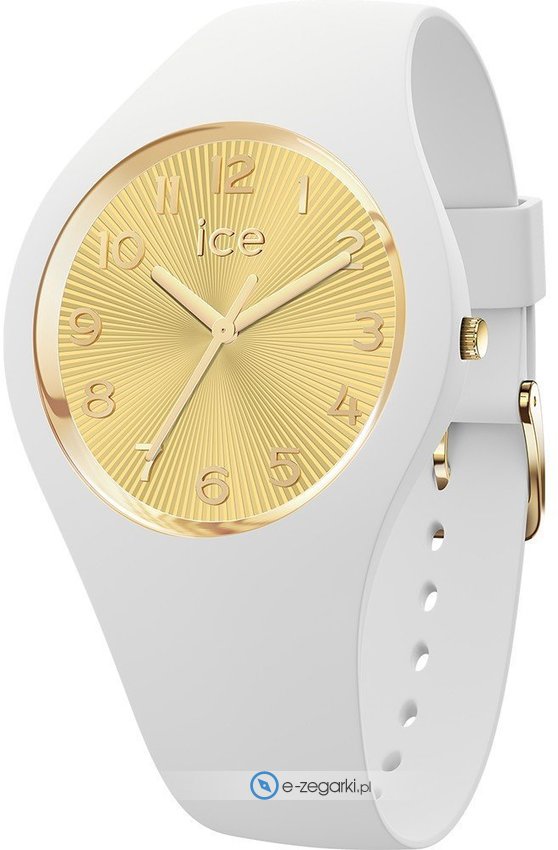 Damski zegarek Ice Watch 025250 to zegarek, który dzięki swemu wzornictwu zawsze będzie prezentował się dobrze. Ciekawy wygląd zegarka osiągnięto także dzięki tarczy w kolorze złotym. Zegarek ten prezentuje godzinę w formacie analogowym dzięki czemu odczyt jest intuicyjny. Koperta w odcieniach koloru białego szeroka jest na 37 mm oraz ma grubość 9 mm - cechuje się okrągłym kształtem.