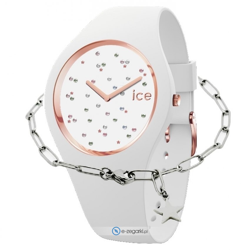 Zegarek damski 018499 marki Ice Watch to idealne połączenie funkcjonalności i modnego wzornictwa. Model ten w gamie pozostałych zegarków tego producenta występuje w kolekcji Ice Watch Cosmos. Charakterystyczną konstrukcję czasomierza osiągnięto dzięki tarczy w kolorze białym. Zaprezentowana metodą analogową bieżąca godzina jest czytelna i szybka do sprawdzenia. Koperta szeroka jest na 40 mm - posiada okrągły kształt.
