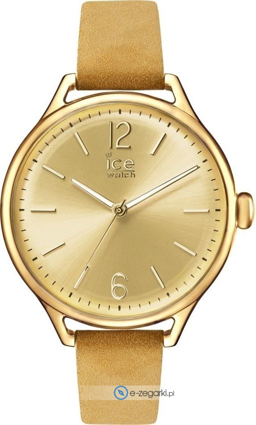 Zegarek damski 013061 marki Ice Watch to stylowe połączenie funkcjonalności a także modnego wzornictwa. Model ten należy do kolekcji Ice Time. Niestereotypowy wygląd czasomierza osiągnięto poprzez cyferblat w kolorze złotym. Koperta szeroka jest na 38 mm - posiada okrągły kształt.