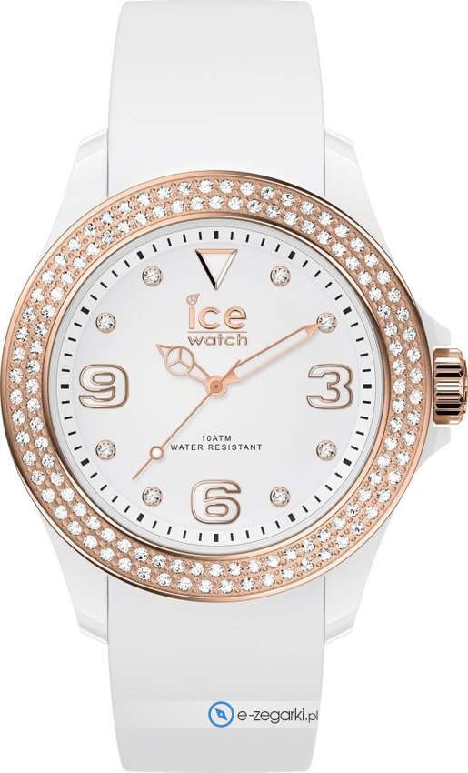 Zegarek damski 017233 marki Ice Watch należy do rodziny Ice Watch Star. Wysokiej jakości tarczę zegarka ozdobiono białym kolorem. Pokazana metodą analogową bieżąca godzina jest czytelna i łatwa do odczytania. Koperta szeroka jest na 40 mm - charakteryzuje się okrągłym kształtem.