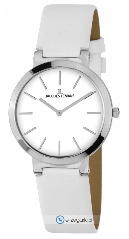 Damski zegarek Jacques Lemans JL 1-1997D to zegarek, który dzięki swemu wzornictwu zawsze będzie prezentował się dobrze. Cyferblat zegarka w kolorze białym. Aktualna godzina pokazywana jest w sposób analogowy co niezmiernie łatwo pozwala ją odczytać. Koperta jest w kolorze srebrnym szeroka jest na 36 mm - ma okrągły kształt.