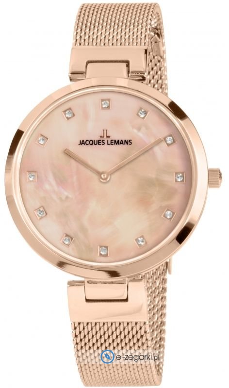 Zegarek damski JL 1-2001H marki Jacques Lemans to stylowe połączenie funkcjonalności oraz ciekawego designu. Model ten w gamie pozostałych zegarków tego producenta występuje w serii Jacques Lemans Milano. Niestereotypowy wygląd zegarka osiągnięto m.in. poprzez tarczę w kolorze różowo złotym. Zegarek ten pokazuje aktualny czas w formacie analogowym dzięki temu odczyt jest bardzo łatwy.