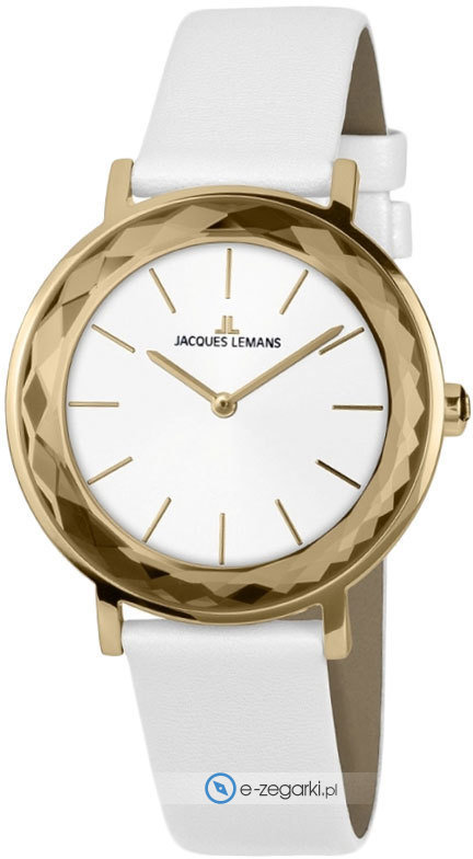 Zegarek JL 1-2054L marki Jacques Lemans to gustowny zegarek naręczny damski, który posiada ciekawe rozwiązania i funkcje. Model ten pochodzi z kolekcji Jacques Lemans York. Cyferblat zegarka w kolorze białym. Zaprezentowana metodą analogową bieżąca godzina jest czytelna i prosta do sprawdzenia. Koperta została pokryta kolorem złotym - w kształcie okrągłym.