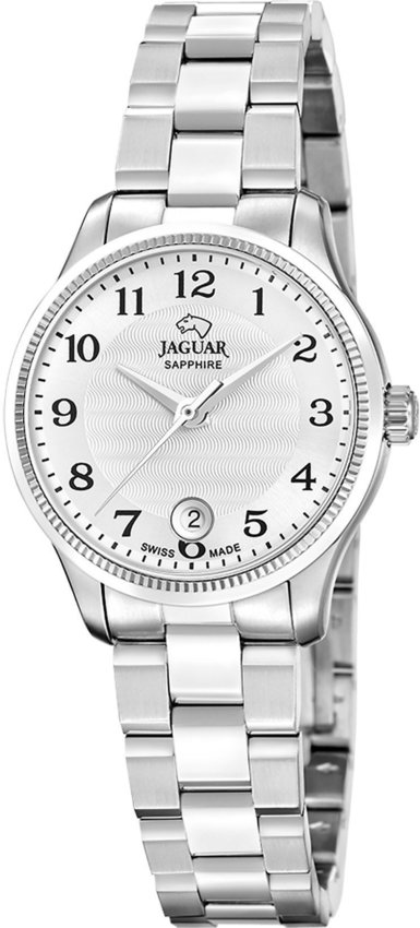 Model J1045-1 marki Jaguar to stylowy zegarek naręczny damski, który posiada ciekawe rozwiązania oraz funkcje. Styl zapewnia wysokiej klasy tarcza w kolorze srebrnym. Zegarek ten pokazuje aktualny czas w formacie analogowym dzięki temu odczyt jest bardzo łatwy. Koperta szeroka jest na 29 mm - w kształcie okrągłym.