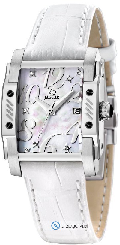 Zegarek damski J647-3 marki Jaguar to idealna pozycja dla ludzi ceniących sobie dbałość o szczegóły jak również bezawaryjne funkcjonowanie mechanizmów. Stylu dodaje wysokiej jakości cyferblat w kolorze perłowym. Pokazana metodą analogową bieżąca godzina jest czytelna i szybka do odczytania. Koperta szeroka jest na 28 mm.