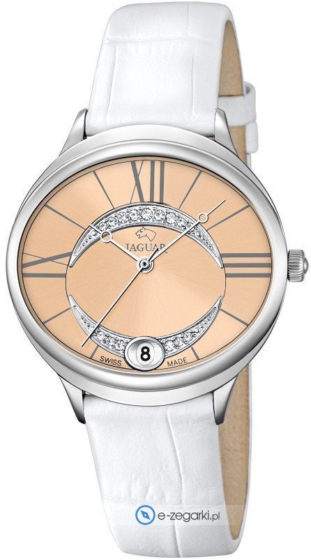 Zegarek damski J800-2 marki Jaguar to dobre połączenie funkcjonalności oraz ciekawego wzornictwa. Charakteru dodaje wysokiej klasy cyferblat w kolorze różowym. Godzina prezentowana jest w sposób analogowy co niezmiernie łatwo pozwala ją odczytać. Koperta szeroka jest na 34 mm - ma owalny kształt.