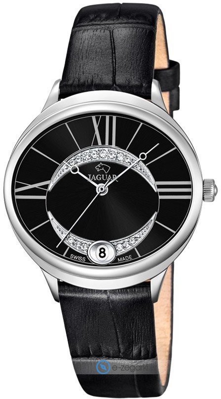 Damski zegarek Jaguar J800-3 to zegarek, który dzięki swemu wzornictwu zawsze będzie prezentował się dobrze. Cyferblat zegarka w kolorze czarnym. Aktualna godzina prezentowana jest w sposób analogowy co niezmiernie łatwo pozwala ją odczytać. Koperta szeroka jest na 34 mm - posiada owalny kształt.