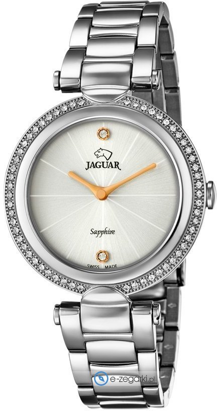 Zegarek damski J829-1 marki Jaguar to dobra propozycja dla osób ceniących sobie dbałość o detale jak również bezawaryjne działanie mechanizmów. Atrakcyjną budowę czasomierza uzyskano dzięki tarczy w kolorze srebrnym. Koperta szeroka jest na 34 mm - wyróżnia się okrągłym kształtem.