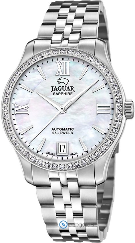 Zegarek damski J997-1 marki Jaguar to dobre połączenie funkcjonalności a także ciekawego designu. Charakter zapewnia wysokiej jakości tarcza w kolorze perłowym. Zegarek ten prezentuje godzinę w formacie analogowym dzięki temu odczyt jest bezproblemowy. Koperta szeroka jest na 34 mm - w kształcie okrągłym.