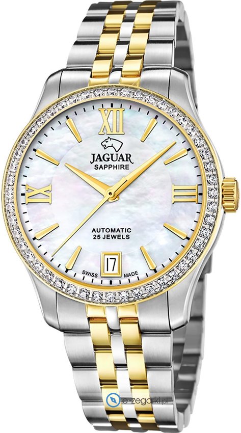 Damski zegarek Jaguar J998-1 to zegarek, który dzięki swemu wzornictwu zawsze będzie prezentował się dobrze. Wysokiej jakości tarczę zegarka ozdobiono perłowym kolorem. Zaprezentowana metodą analogową aktualna godzina jest czytelna i szybka do odczytania. Koperta szeroka jest na 34 mm - wyróżnia się okrągłym kształtem.