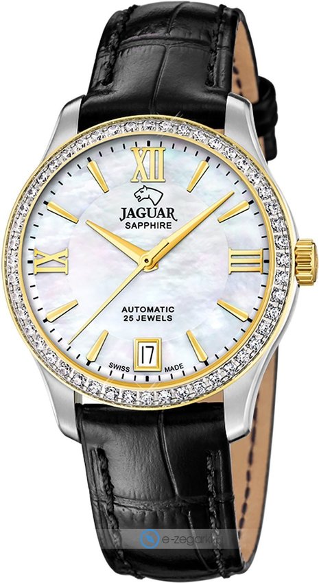 Model J998-A marki Jaguar to gustowny zegarek naręczny damski, który wyposażono w pomysłowe rozwiązania oraz funkcje. Tarcza zegarka jest w kolorze perłowym. Zegarek ten pokazuje godzinę w formacie analogowym dzięki temu odczyt jest intuicyjny. Koperta szeroka jest na 34 mm - cechuje się okrągłym kształtem.