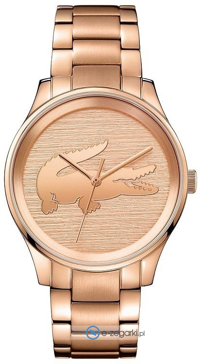 Model 2001015 marki Lacoste to elegancki zegarek naręczny damski, który wyposażono w ciekawe rozwiązania oraz funkcje. Charakterystyczną stylistykę czasomierza uzyskano dzięki tarczy w kolorze różowo złotym. Pokazana metodą analogową bieżąca godzina jest czytelna i łatwa do sprawdzenia. Koperta w odcieniach koloru różowo złotego szeroka jest na 38 mm oraz ma grubość 8 mm - w kształcie okrągłym.