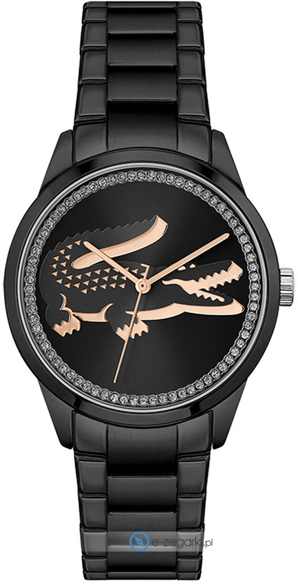 Zegarek damski 2001192 marki Lacoste to idealne połączenie funkcjonalności a także modnego designu. Atrakcyjny wygląd czasomierza osiągnięto także dzięki tarczy w kolorze czarnym. Pokazana metodą analogową bieżąca godzina jest czytelna i prosta do sprawdzenia. Koperta została pokryta kolorem czarnym szeroka jest na 36 mm - charakteryzuje się okrągłym kształtem.