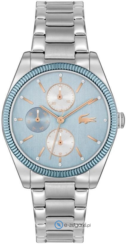 Model 2001365 marki Lacoste to stylowy zegarek naręczny damski, który jest wyposażony w pomysłowe rozwiązania i funkcje. Niebanalną budowę zegarka uzyskano z pomocą tarczy w kolorze błękitnym. Zegarek ten pokazuje aktualny czas w formacie analogowym dzięki czemu odczyt jest bardzo łatwy. Koperta jest w kolorze srebrnym - charakteryzuje się okrągłym kształtem.