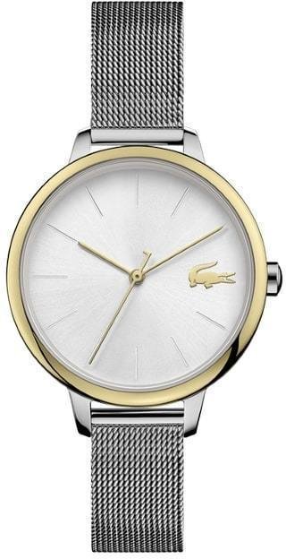 Zegarek damski CANNES-2001127 marki Lacoste to stylowe połączenie funkcjonalności i ciekawego designu. Stylu nadaje wysokiej jakości cyferblat w kolorze srebrnym. Zegarek ten pokazuje godzinę w formacie analogowym dzięki czemu odczyt jest bezproblemowy. Koperta w barwach koloru srebrno złotego szeroka jest na 34 mm oraz ma grubość 8 mm - cechuje się okrągłym kształtem.