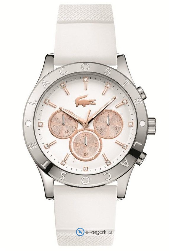 Model CHARLOTTE-2000940 marki Lacoste to elegancki zegarek naręczny damski, który posiada pomysłowe rozwiązania oraz funkcje. Aktualna godzina przedstawiona jest w sposób analogowy co niezmiernie łatwo pozwala ją odczytać. Koperta szeroka jest na 40 mm oraz ma grubość 12 mm.