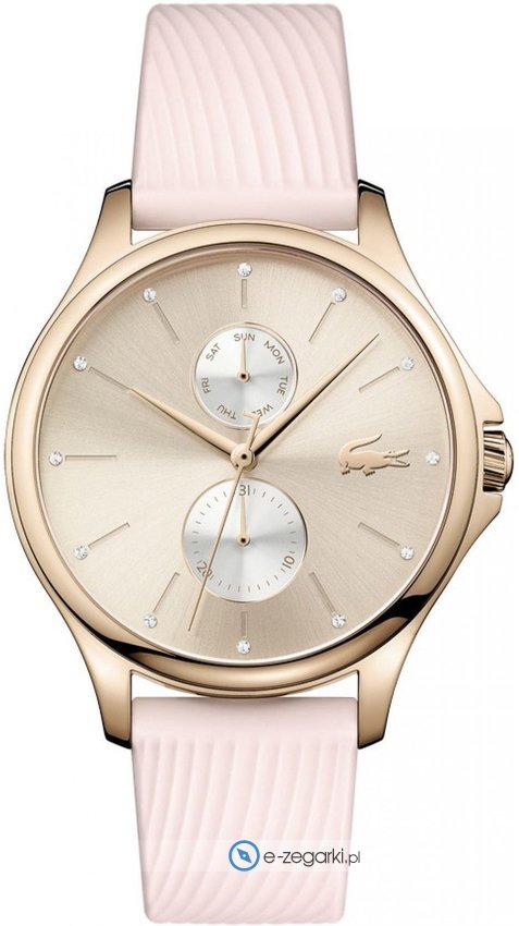 Model KEA-2001025 marki Lacoste to elegancki zegarek naręczny damski, który wyposażono w ciekawe rozwiązania i funkcje. Koperta szeroka jest na 38 mm oraz ma grubość 85 mm.