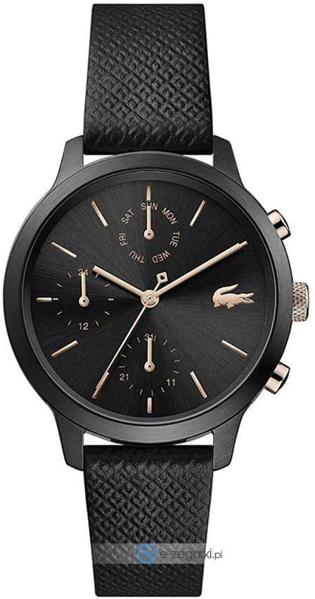 Zegarek damski L1212-2001153 marki Lacoste to idealna pozycja dla ludzi ceniących sobie dbałość o szczegóły oraz sprawne funkcjonowanie mechanizmów. Stylu dodaje wysokiej jakości cyferblat w kolorze czarnym. Godzina pokazywana jest w sposób analogowy co bez trudu pozwala ją odczytać. Koperta jest pokryta kolorem czarnym szeroka jest na 36 mm - w kształcie okrągłym.