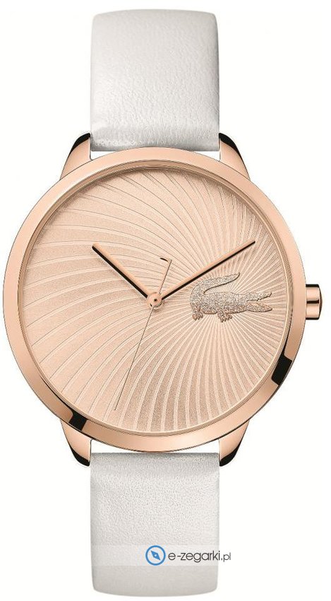 Damski zegarek Lacoste LEXI-2001068 to zegarek, który dzięki swemu wzornictwu zawsze będzie prezentował się dobrze. Charakterystyczną konstrukcję zegarka osiągnięto dzięki tarczy w kolorze różowo złotym. Aktualna godzina pokazywana jest w sposób analogowy co niezmiernie łatwo pozwala ją odczytać. Koperta szeroka jest na 38 mm - charakteryzuje się okrągłym kształtem.