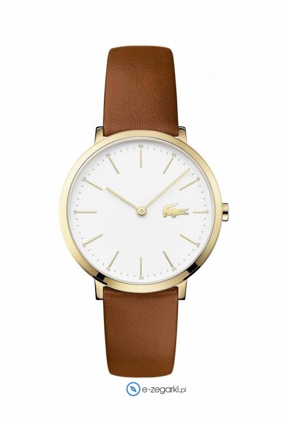Zegarek damski LACOSTE-MOON-2000947 marki Lacoste to dobra pozycja dla ludzi ceniących sobie dbałość o szczegóły oraz bezawaryjne działanie mechanizmów. Koperta jest pokryta kolorem złotym szeroka jest na 35 mm oraz ma grubość 6 mm.