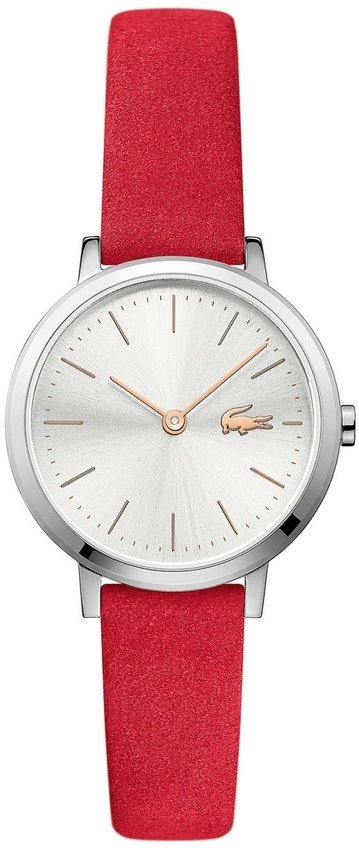 Damski zegarek Lacoste MOON-2001048 to zegarek, który dzięki swemu wzornictwu zawsze będzie prezentował się dobrze. Cyferblat zegarka jest w kolorze srebrnym. Godzina przedstawiona jest w sposób analogowy co bez trudu pozwala ją odczytać. Koperta w barwach koloru srebrnego szeroka jest na 28 mm oraz ma grubość 6 mm - w kształcie okrągłym.