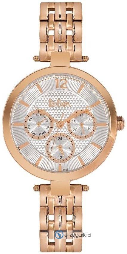 Zegarek LC06241.430 posiada kwarcowy mechanizm zasilany klasyczną baterią. Odporna na korozję oraz działanie czynników atmosferycznych bransoleta różowo złotego koloru zapewnia wysoką jakość i trwałość.