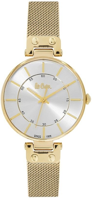 Zegarek damski LC06401.130 marki Lee Cooper to idealna propozycja dla ludzi ceniących sobie dbałość o szczegóły a także bezproblemowe działanie mechanizmów. Wysokiej jakości tarczę zegarka ozdobiono srebrnym kolorem. Zegarek ten pokazuje godzinę w formacie analogowym dzięki temu odczyt jest intuicyjny. Koperta jest w kolorze złotym szeroka jest na 34 mm - wyróżnia się okrągłym kształtem.