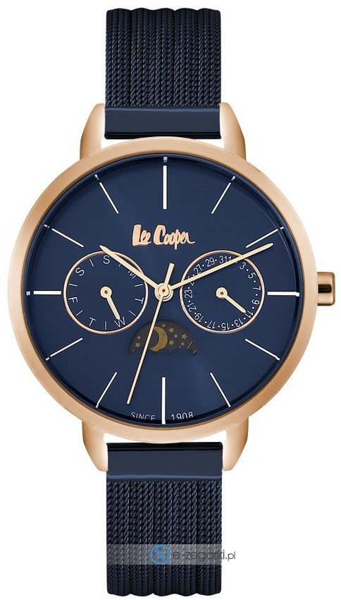 Model LC06482.490 marki Lee Cooper to stylowy zegarek naręczny damski, który wyposażono w ciekawe rozwiązania oraz funkcje. Niestereotypowy wygląd czasomierza osiągnięto poprzez tarczę w kolorze granatowym. Koperta szeroka jest na 34 mm - ma okrągły kształt.