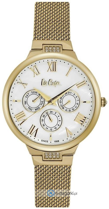 Kwarcowa bateria umieszczona w zegarku LC06521.120 zapewnia zasilanie jego mechanizmu. Wytrzymała bransoleta koloru złotego wytworzona ze stali nierdzewnej zapewnia wysoką jakość i trwałość.