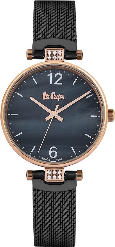 Zegarek damski LC06587.450 marki Lee Cooper to ciekawa pozycja dla ludzi ceniących sobie dbałość o szczegóły jak również sprawne funkcjonowanie mechanizmów. Wysokiej jakości cyferblat zegarka pokryto czarnym kolorem. Koperta szeroka jest na 33 mm - cechuje się okrągłym kształtem.