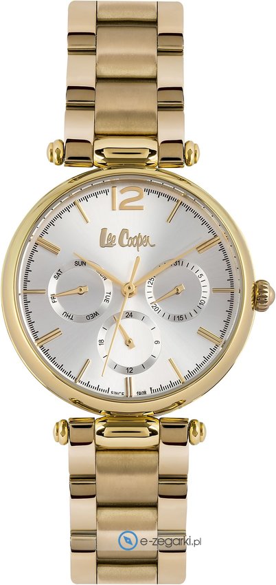 Zegarek damski LC06619.130 marki Lee Cooper to ciekawa pozycja dla osób ceniących sobie dbałość o detale oraz sprawne działanie mechanizmów. Niestereotypowy wygląd czasomierza osiągnięto poprzez cyferblat w kolorze białym. Koperta w odcieniach koloru złotego - charakteryzuje się okrągłym kształtem.