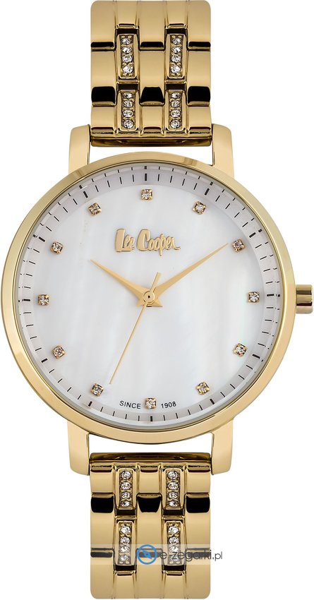 Zegarek damski LC06627.120 marki Lee Cooper to dobra propozycja dla ludzi ceniących sobie dbałość o detale oraz bezawaryjne działanie mechanizmów. Charakter zapewnia wysokiej jakości cyferblat w kolorze perłowym. Koperta jest ozdobiona kolorem złotym - charakteryzuje się okrągłym kształtem.