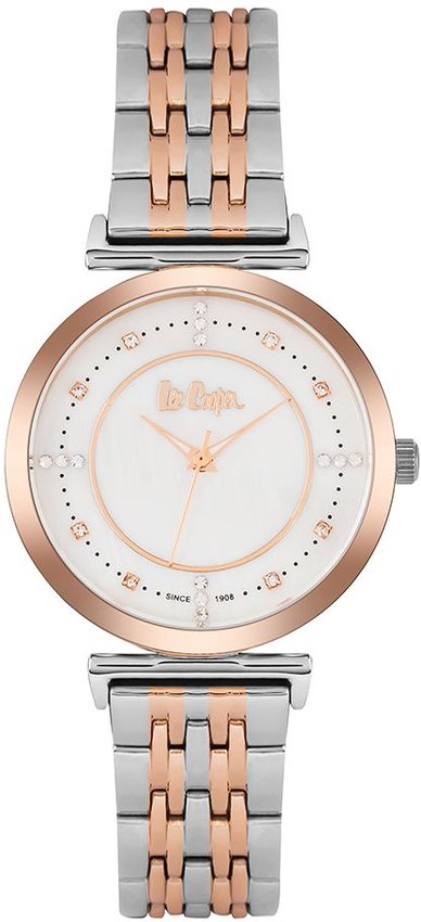 Zegarek damski LC06774.520 marki Lee Cooper to idealne połączenie funkcjonalności i ciekawego designu. Stylu nadaje wysokiej klasy cyferblat w kolorze jasnym. Godzina pokazywana jest w sposób analogowy co niezmiernie łatwo pozwala ją odczytać. Koperta szeroka jest na 34 mm - ma okrągły kształt.