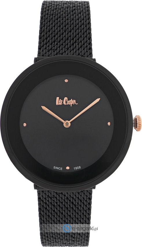 Zegarek damski LC06805.650 marki Lee Cooper to ciekawa pozycja dla ludzi ceniących sobie dbałość o detale jak również sprawne funkcjonowanie mechanizmów. Niebanalną konstrukcję zegarka osiągnięto dzięki tarczy w kolorze czarnym. Aktualna godzina zaprezentowana jest w sposób analogowy co bez trudu pozwala ją odczytać. Koperta została pokryta kolorem czarnym szeroka jest na 37 mm - ma okrągły kształt.