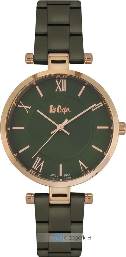 Model LC06807.470 marki Lee Cooper to elegancki zegarek naręczny damski, który wyposażono w ciekawe rozwiązania oraz funkcje. Wysokiej jakości tarczę zegarka ozdobiono zielonym kolorem. Koperta szeroka jest na 36 mm - wyróżnia się okrągłym kształtem.