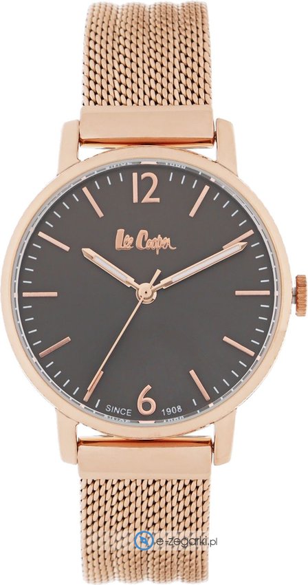 Zegarek damski LC06826.460 marki Lee Cooper to ciekawa pozycja dla ludzi ceniących sobie dbałość o detale jak również bezawaryjne zachowanie mechanizmów. Charakterystyczny wygląd zegarka osiągnięto również dzięki tarczy w kolorze szarym. Godzina prezentowana jest w sposób analogowy co bez trudu pozwala ją odczytać. Koperta szeroka jest na 34 mm - wyróżnia się okrągłym kształtem.