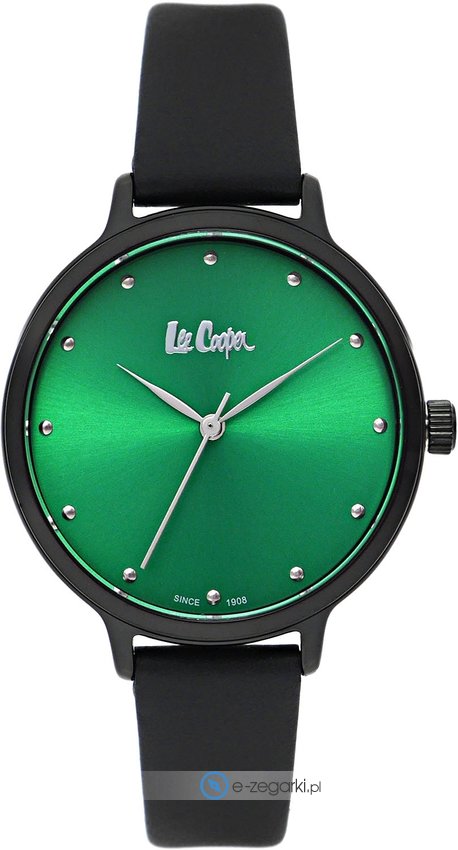 Zegarek damski LC06868.671 marki Lee Cooper to idealne połączenie funkcjonalności i modnego designu. Wysokiej trwałości cyferblat zegarka pokryto zielonym kolorem. Aktualna godzina przedstawiona jest w sposób analogowy co niezmiernie łatwo pozwala ją odczytać. Koperta jest pokryta kolorem czarnym szeroka jest na 36 mm - cechuje się okrągłym kształtem.