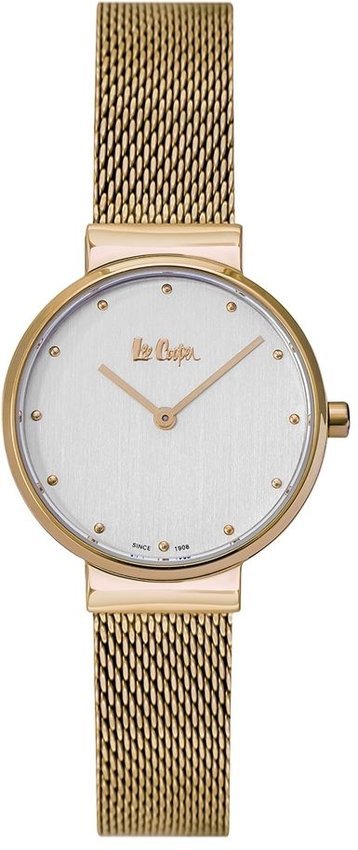 Zegarek damski LC06870.130 marki Lee Cooper to ciekawa pozycja dla osób ceniących sobie dbałość o detale a także bezawaryjne funkcjonowanie mechanizmów. Nieschematyczny wygląd czasomierza osiągnięto m.in. poprzez cyferblat w kolorze szarym. Pokazana metodą analogową bieżąca godzina jest czytelna i prosta do sprawdzenia. Koperta jest pokryta kolorem złotym szeroka jest na 31 mm - ma okrągły kształt.