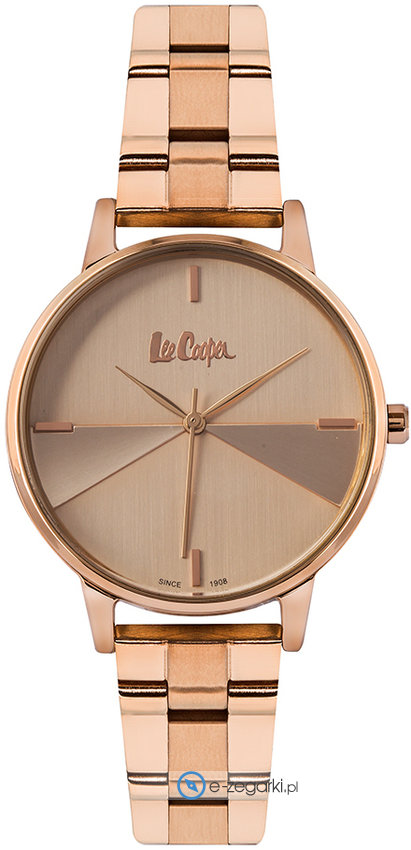 Zegarek damski LC06873.410 marki Lee Cooper to ciekawa pozycja dla osób ceniących sobie dbałość o szczegóły oraz bezawaryjne funkcjonowanie mechanizmów. Niebanalną stylistykę zegarka osiągnięto z pomocą tarczy w kolorze różowo złotym. Koperta szeroka jest na 37 mm.