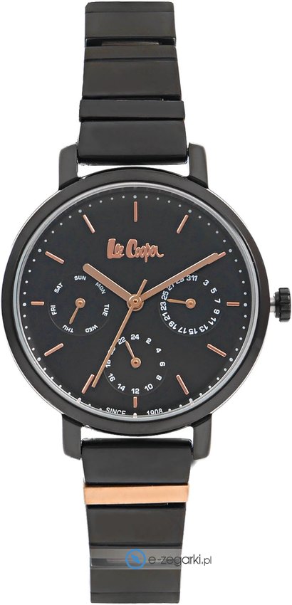 Zegarek LC06894.650 posiada kwarcowy mechanizm zasilany tradycyjną baterią. Odporna na korozję oraz działanie czynników atmosferycznych bransoleta czarnego koloru cechuje się jakością, a także trwałością.