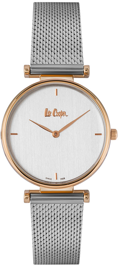 Zegarek damski LC06898.530 marki Lee Cooper to dobra pozycja dla ludzi ceniących sobie dbałość o szczegóły jak również bezawaryjne działanie mechanizmów. Wysokiej trwałości tarczę zegarka pokryto srebrnym kolorem. Zegarek ten pokazuje aktualny czas w formacie analogowym dzięki temu odczyt jest bezproblemowy. Koperta szeroka jest na 33 mm - cechuje się okrągłym kształtem.
