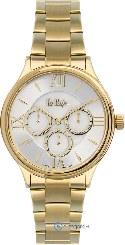Zegarek LC06933.130 posiada kwarcowy mechanizm zasilany standardową baterią. Odporna na korozję oraz oddziaływanie czynników atmosferycznych bransoleta koloru złotego zapewnia wysoką jakość i trwałość.