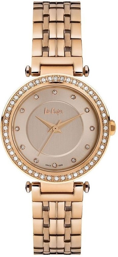 Damski zegarek Lee Cooper LC06942.410 to zegarek, który dzięki swemu wzornictwu zawsze będzie prezentował się dobrze. Charakterystyczny wygląd zegarka osiągnięto m.in. poprzez cyferblat w kolorze różowo złotym. Zaprezentowana metodą analogową bieżąca godzina jest czytelna i szybka do sprawdzenia. Koperta szeroka jest na 34 mm - w kształcie okrągłym.